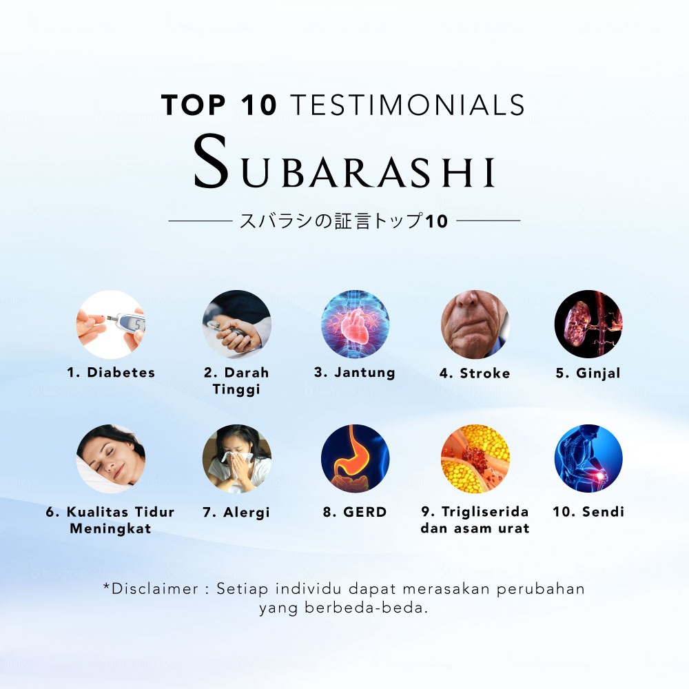 Disclaimer: Manfaat yang dirasakan berbeda-beda bagi setiap orang karena setiap orang memiliki kondisi tubuh yang berbeda.